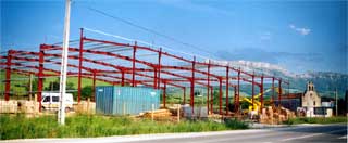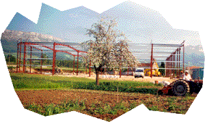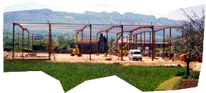 barbarie: pabellones industriales en medio de un pueblo.
